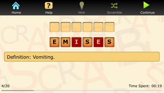 Med Term Scramble is een gratis spel dat gebruikers de mogelijkheid biedt om hun kennis van medische terminologie te testen. Met meer dan 30 verschillende woordenlijsten kunnen spelers hun beheersing van complexe termen zoals steatorrhea en rhabdomyoma onder de loep nemen. Dit spel biedt een uitdagende en interactieve manier om medische termen te leren en te onthouden, wat het een waardevolle aanvulling maakt voor studenten of professionals in de gezondheidszorg.